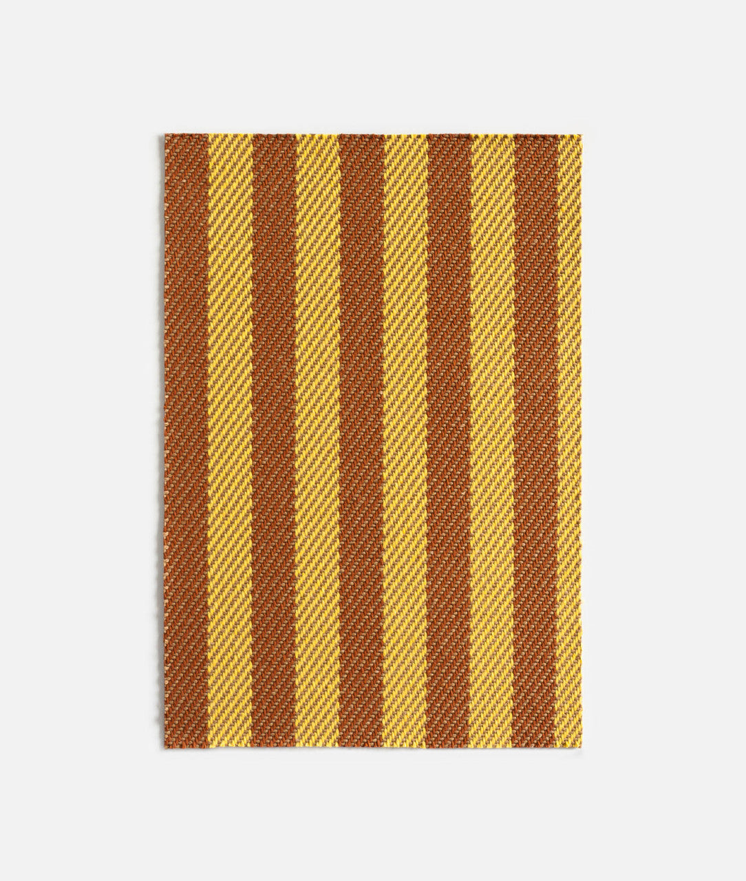 Striped rug with brown and yellow vertical stripes on a white background